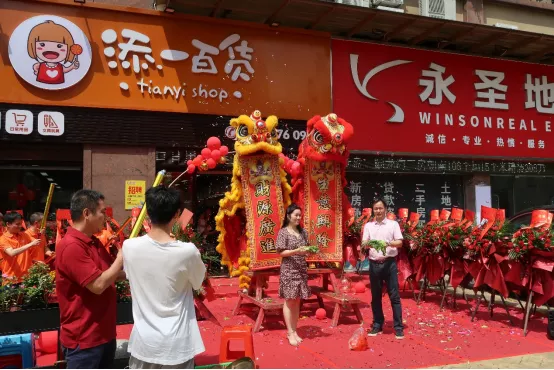 在万众期待中,我们迎来了添一百货二店的开业盛典,伴随着舞狮的锣鼓声与礼炮的轰鸣,开业仪式正式开始! 下面请跟随摄像小哥的视角让我们共同见证此次开业的盛况: